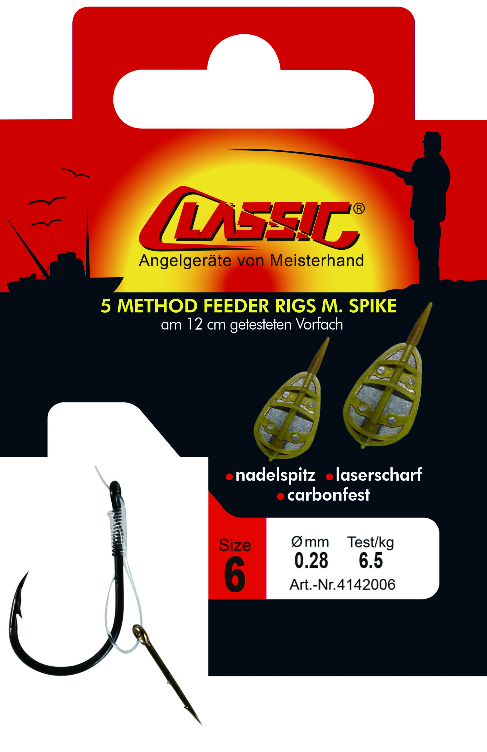 Unsere neue Spezial – Haken Range zum Feederfischen. Die Rigs mit Spike (0,20mm/3,8 kg) dienen der Beköderung mit verschiedenen Partikelködern.