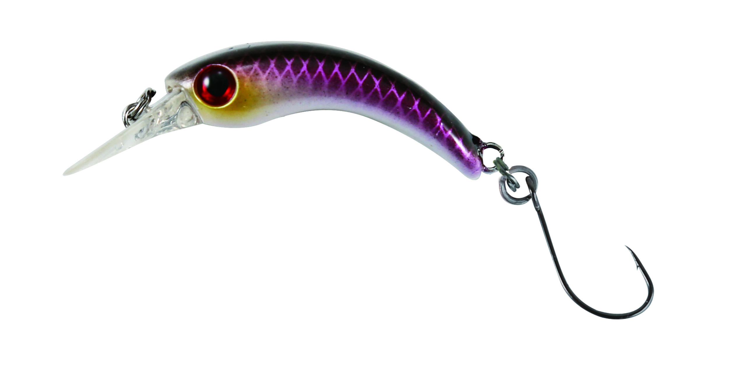 Curvy Wobbler mit Einzelhaken – Als weiteren Trend in der Ul-Fischerei kristallisiert sich die Curvy Wobblerserie heraus. Diese Serie zeichnet sich durch ihr äußerst aktives Laufverhalten aus, welches auch besonders träge Fische anspricht. Gewicht: 1,2 g, Größe: 2,9 cm, Action: schwimmend TT: 0,3-0,5m, Farbe: lila-silber