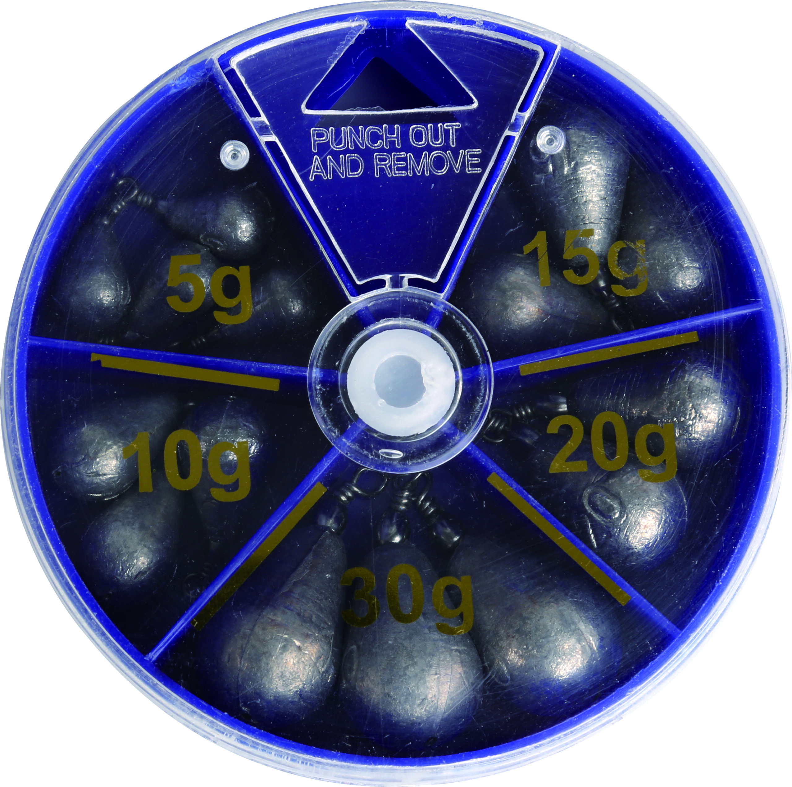 Eine beliebte Zusammenstellung von Wirbelbleien, ideal zum Grundangeln. Das Set beinhaltet Gewichte von 5, 10, 15, 20 und 30g. Geliefert in einer praktischen Spenderdose.